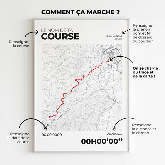 Affiche course à pied personnalisée | Tracé, chrono et nom du coureur | Idée cadeau coureur